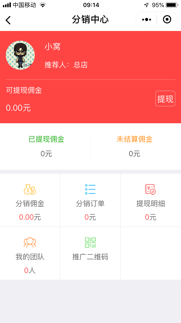 | 商品管理:实物商品、虚拟商品、电子卡券、酒店商品、蛋糕烘焙商品、商品分组、我要分销 | |